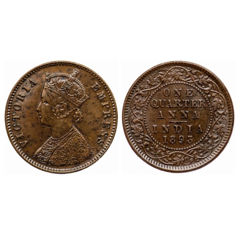 Victoria Empress, Copper, Quarter Anna, 1893, Calcutta Mint, B/II, no mint mark. GK 852.