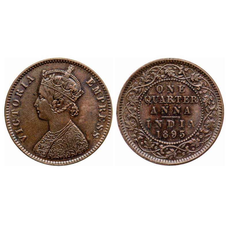 Victoria Empress, Copper, Quarter Anna, 1895, Calcutta Mint, B/II, no mint mark. GK 854.