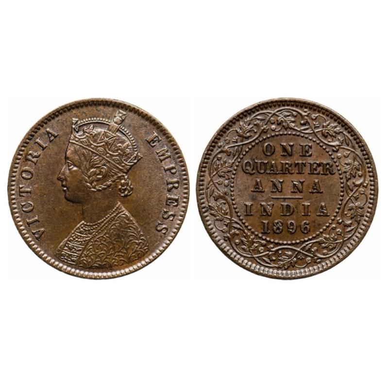 Victoria Empress, Copper, Quarter Anna, 1896, Calcutta Mint, B/II, no mint mark. GK 855. ...
