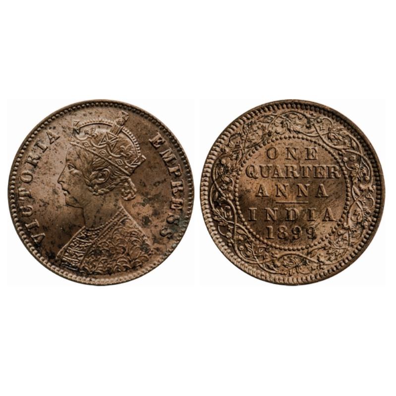 Victoria Empress, Copper, Quarter Anna, 1899, Calcutta Mint, A/I, No mint mark. Gk 879.