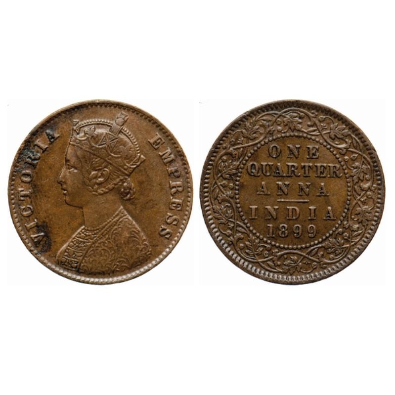 Victoria Empress, Copper, Quarter Anna, 1899, Calcutta Mint, A/I, No mint mark. Gk 879. ...