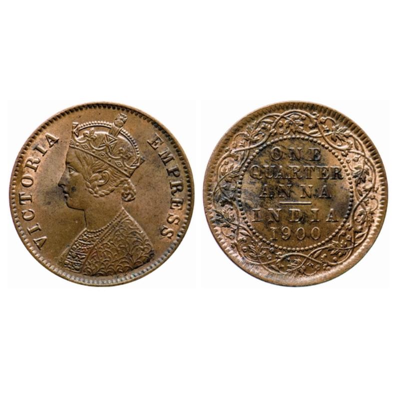 Victoria Empress, Copper, Quarter Anna, 1900, Calcutta Mint, B/II, no mint mark. GK 859.