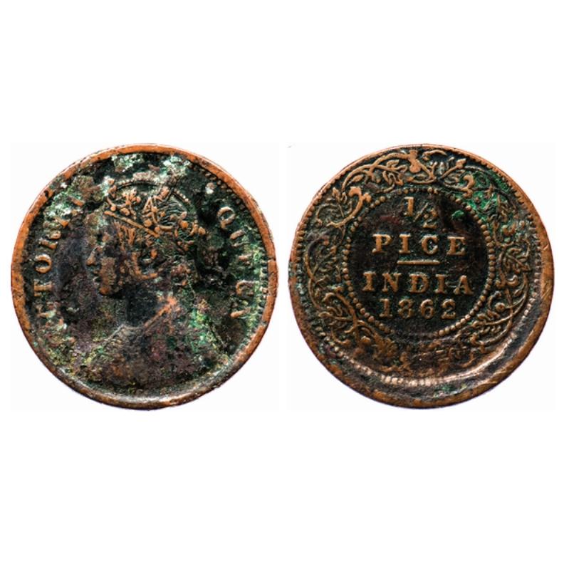 Victoria Queen, Copper, ½ Pice, 1862, Calcutta Mint, A/I, Die crack on Obv. GK 401. ...
