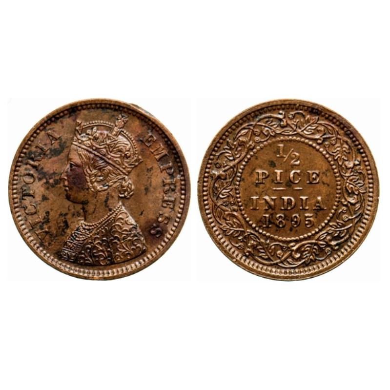 Victoria Empress, Copper, ½ Pice, 1895, Calcutta Mint, A/I, no mint mark, Ghost on reverse. GK 875.