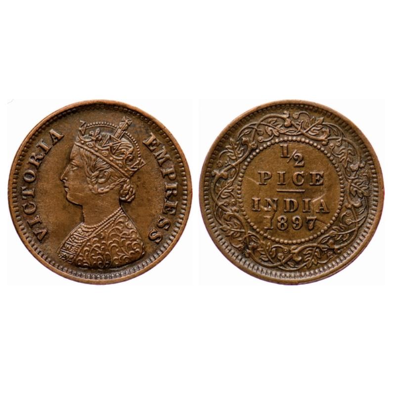 Victoria Empress, Copper, ½ Pice, 1897, Calcutta Mint, A/I, no mint mark. GK 877. ...