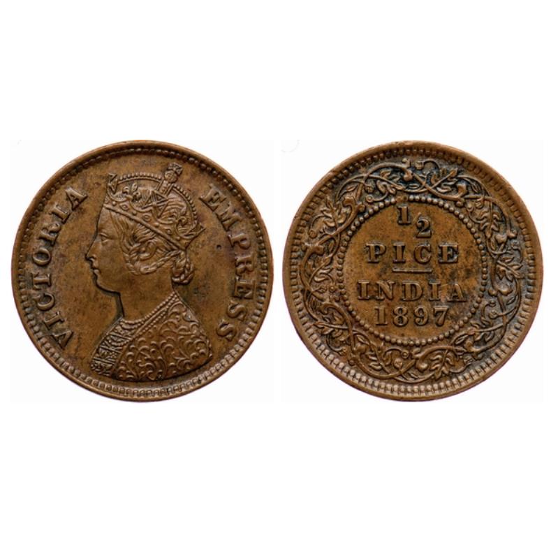 Victoria Empress, Copper, ½ Pice, 1897, Calcutta Mint, A/I, no mint mark. GK 877.