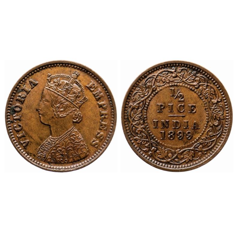 Victoria Empress, Copper, ½ Pice, 1899, Calcutta Mint, A/I, no mint mark. GK 879.