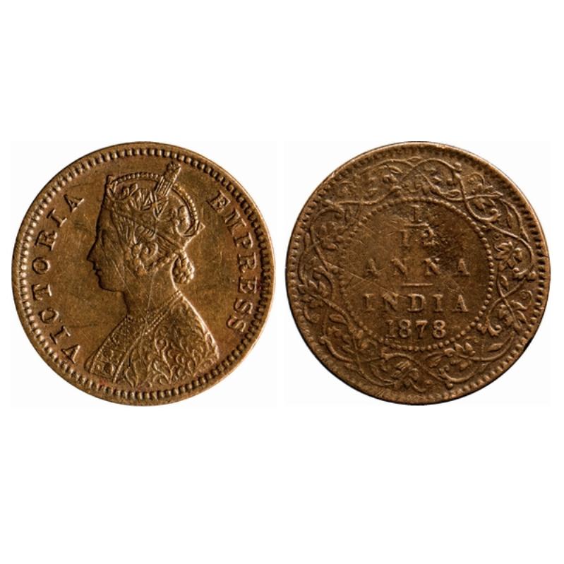 Victoria Empress, Copper, 1/12 Anna, 1878, Calcutta Mint, Obv. B, No mint mark. GK 891.