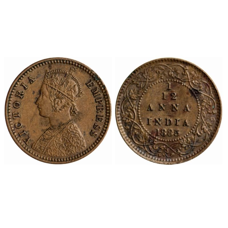 Victoria Empress, Copper, 1/12 Anna, 1885, Calcutta Mint, Obv. B, no mint mark. GK 900. ...