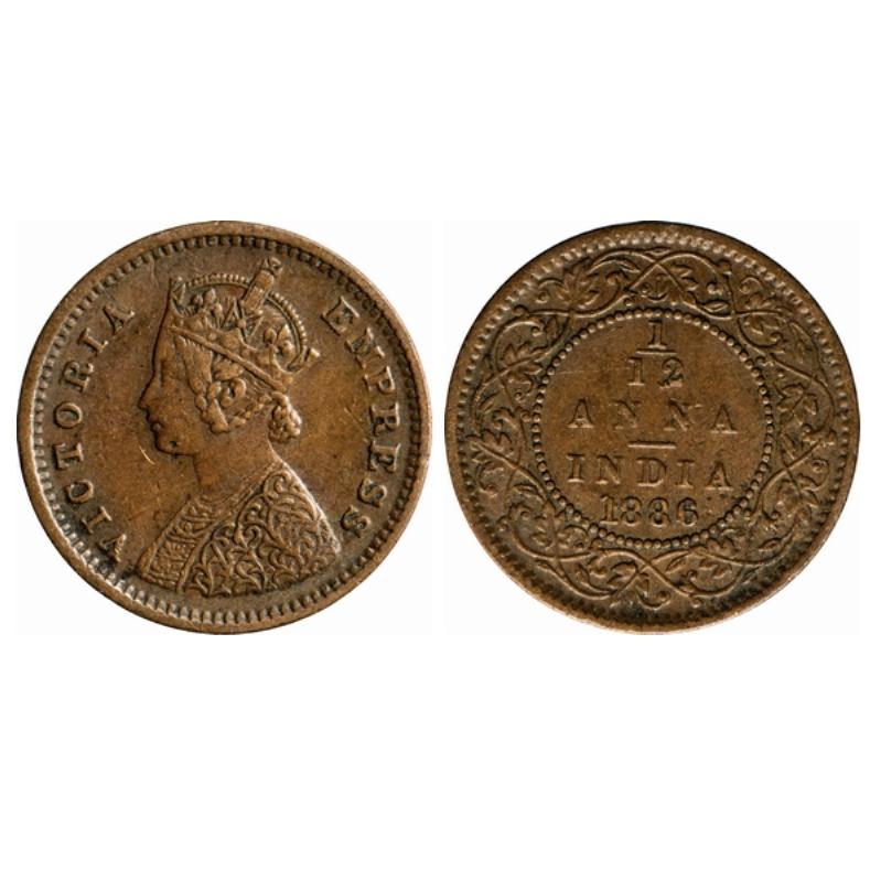 Victoria Empress, Copper, 1/12 Anna, 1886, Bombay Mint, Obv. A, No mint mark. GK 901.