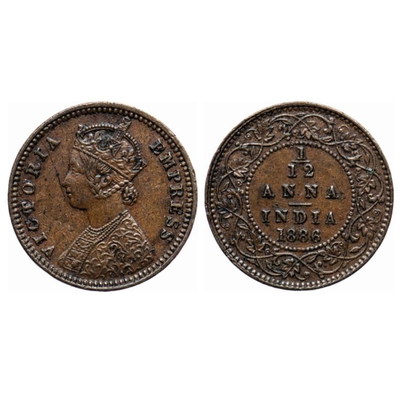 Victoria Empress, Copper, 1/12 Anna, 1886, Calcutta Mint, Obv. B, 'C' incused. GK 902.
