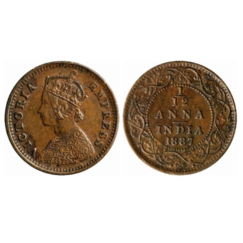 Victoria Empress, Copper, 1/12 Anna, 1887, Calcutta Mint, Obv. B, no mint mark. GK 906. ...