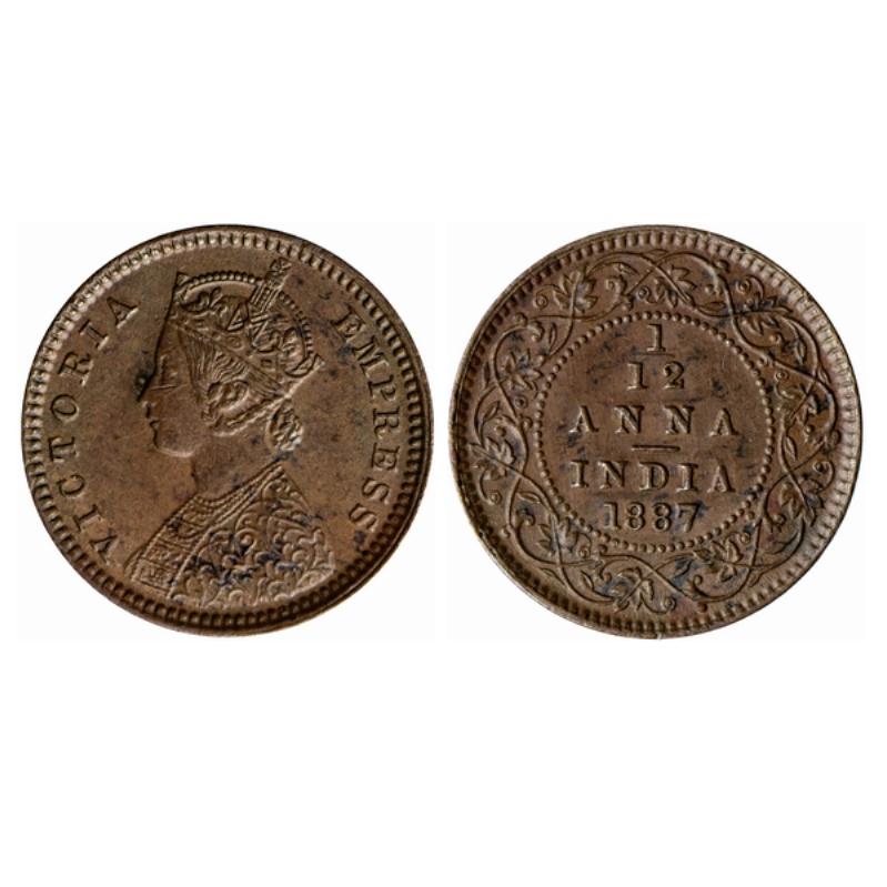 Victoria Empress, Copper, 1/12 Anna, 1887, Calcutta Mint, Obv. B, no mint mark. GK 906.