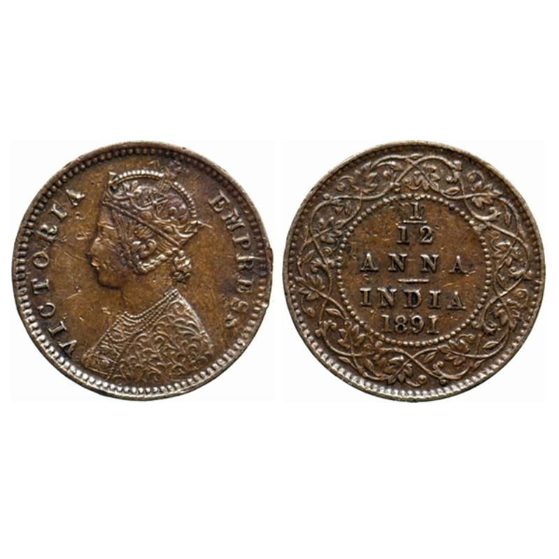 Victoria Empress, Copper, 1/12 Anna, 1891, Calcutta Mint, Obv. B, no mint mark. GK 902.
