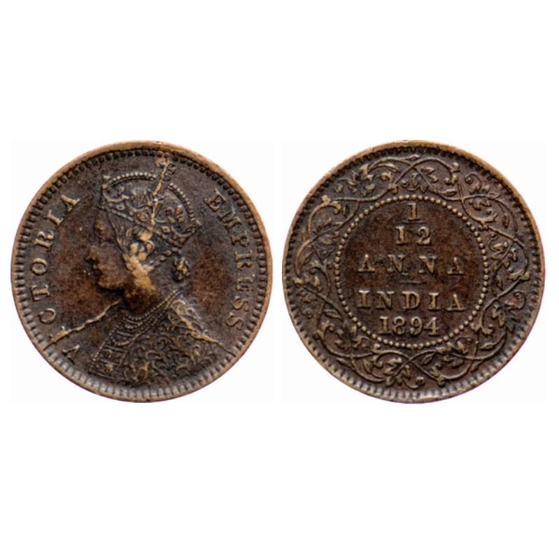 Victoria Empress, Copper, 1/12 Anna, 1894, Calcutta Mint, Obv. B, No mint mark. GK 915. ...