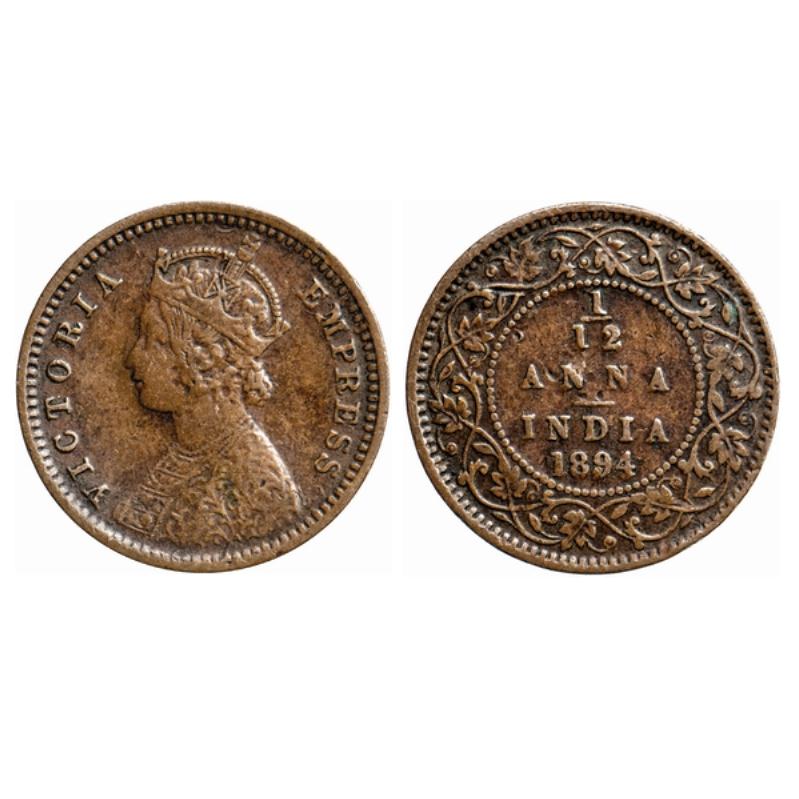 Victoria Empress, Copper, 1/12 Anna, 1894, Calcutta Mint, Obv. B, No mint mark. GK 915.