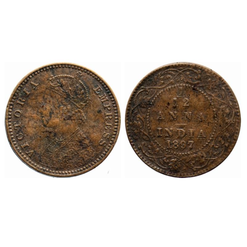 Victoria Empress, Copper, 1/12 Anna, 1897, Calcutta Mint, Obv. B, No mint mark, Die cracks on Obver...
