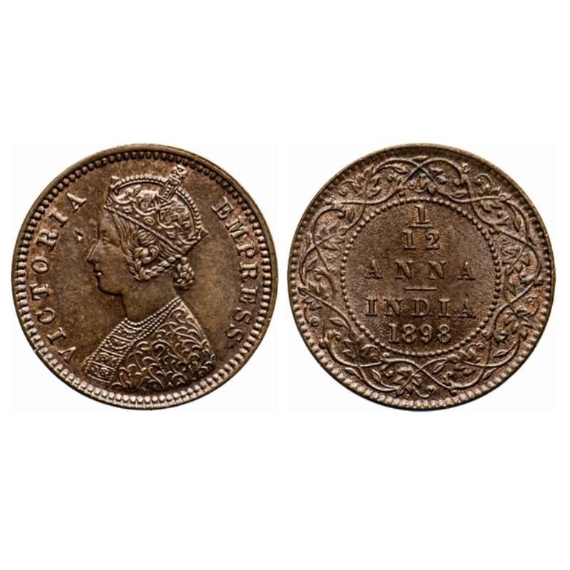 Victoria Empress, Copper, 1/12 Anna, 1898, Calcutta Mint, Obv. B, No mint mark. GK 916.