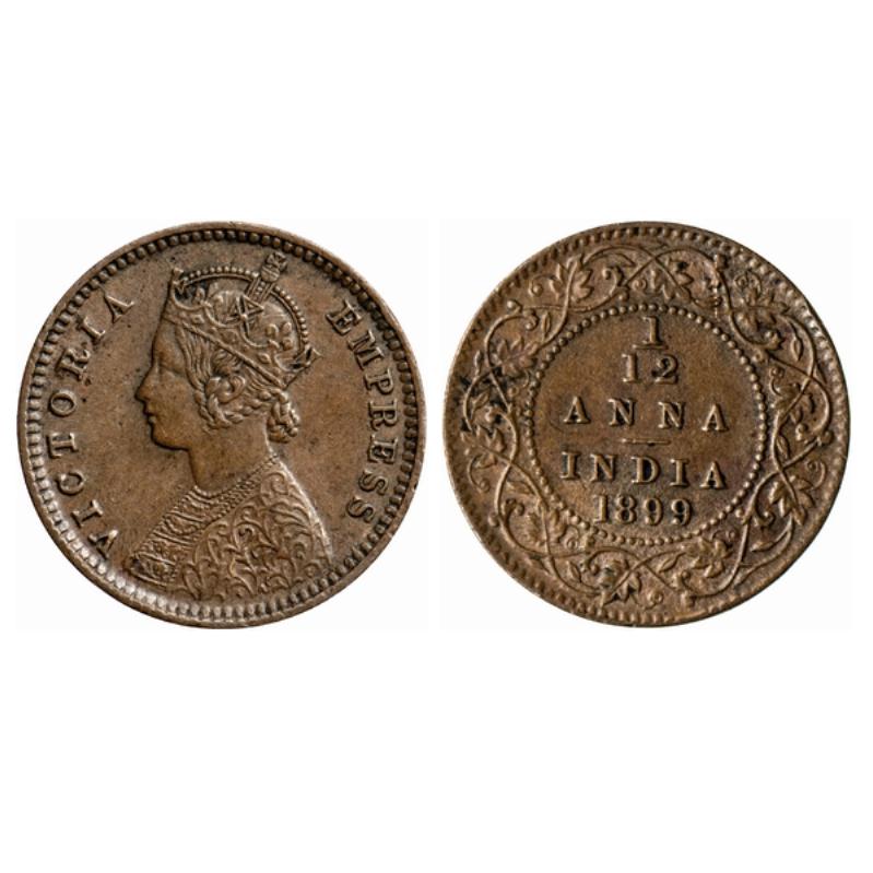 Victoria Empress, Copper, 1/12 Anna, 1899, Calcutta Mint, Obv. B, No mint mark. GK 920.