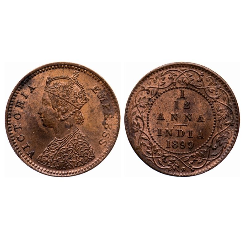 Victoria Empress, Copper, 1/12 Anna, 1899, Calcutta Mint, Obv. B, No mint mark. GK 920. ...