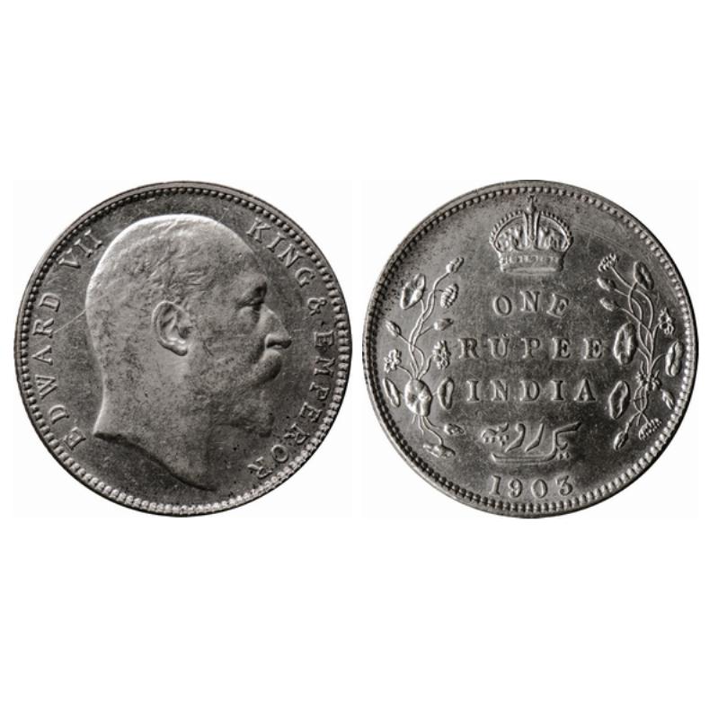 Edward VII, Silver, Rupee, 1903, Bombay Mint, B incused, Dot. GK 926.