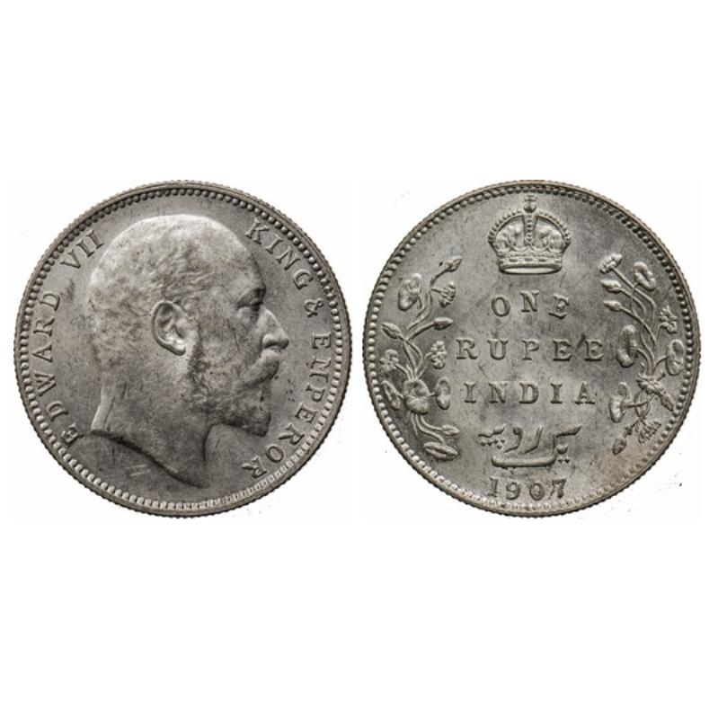 Edward VII, Silver, Rupee, 1907, Bombay Mint, B incused and dot, Die cracks on Obverse. Gk 943.