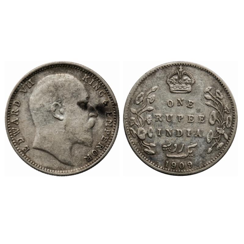 Edward VII, Silver, Rupee, 1909, Bombay Mint, No B only dot. GK 953.