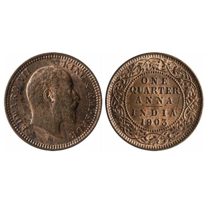 Edward VII, Copper, Quarter Anna (8 Coins), 1903, 1904, 1905, 1906 (Copper), 1907, 1908, 1909, 191...