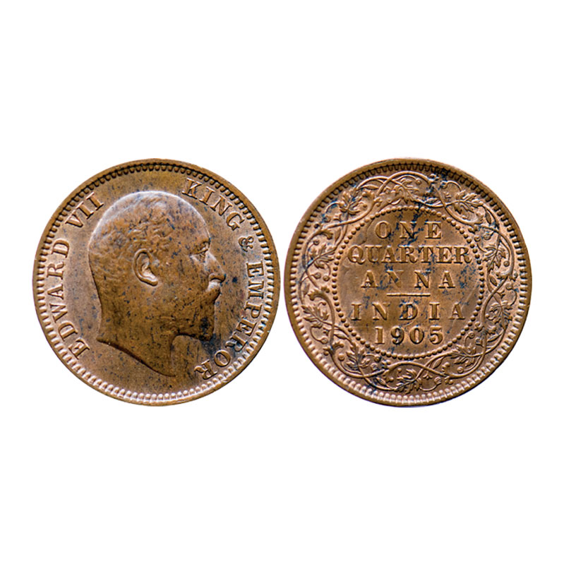 Edward VII, Copper, Quarter Anna (8 Coins), 1903, 1904, 1905, 1906 (Copper), 1907, 1908, 1909, 191...
