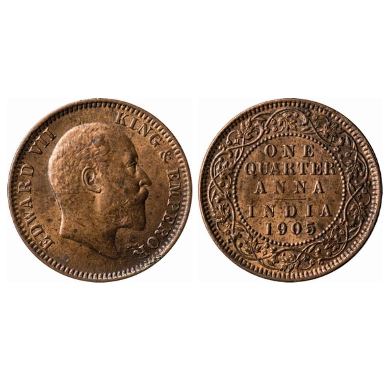 Edward VII, Copper, Quarter Anna, 1905, Calcutta Mint, No mint mark. GK 996. ...