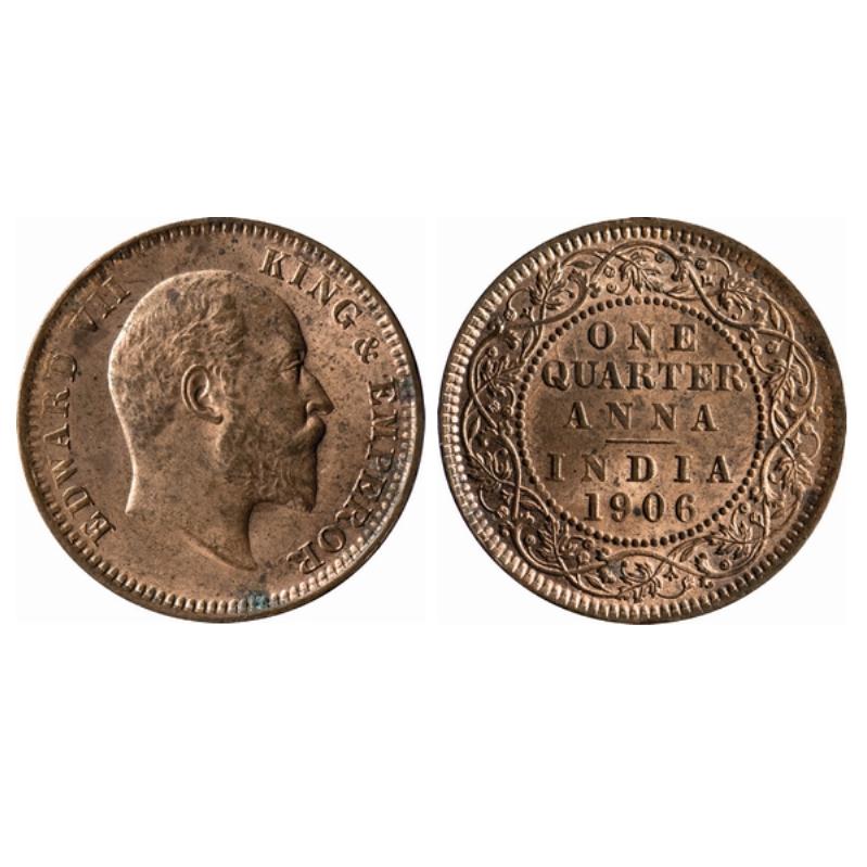 Edward VII, Copper, Quarter Anna, 1906, Calcutta Mint, No mint mark. GK 997.