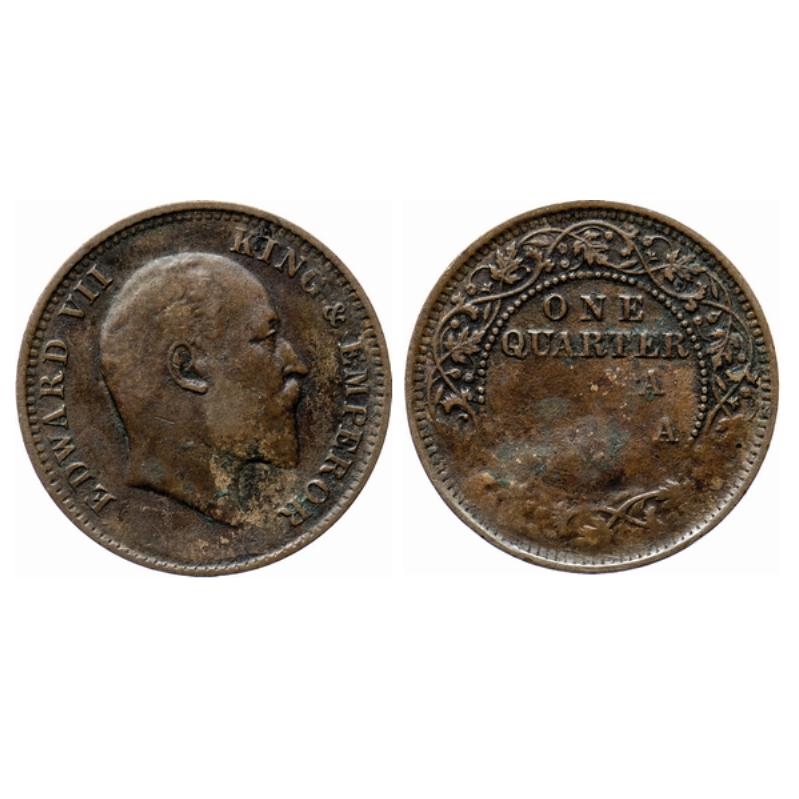Edward VII, Copper, Quarter Anna, 1906, Calcutta Mint, No mint mark. GK 997. ...