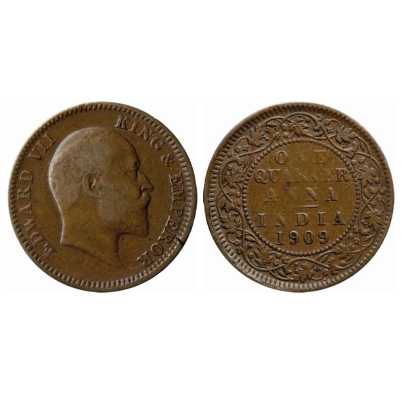 Edward VII, Bronze, Quarter Anna, 1909, Calcutta Mint, No mint mark. GK 1001.