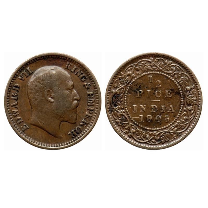 Edward VII, Copper, ½ Pice, 1905, Calcutta Mint, No mint mark, Multiple die crack on Obverse. GK 10...