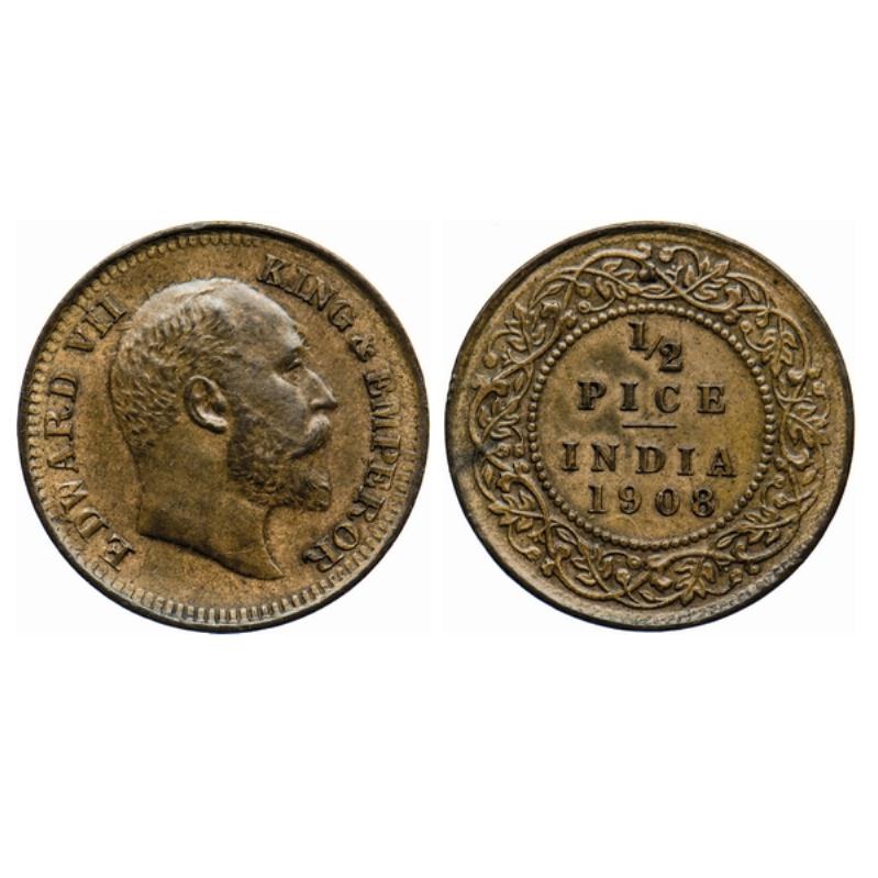 Edward VII, Bronze, ½ Pice, 1908, Calcutta Mint, No mint mark. GK 1009. ...