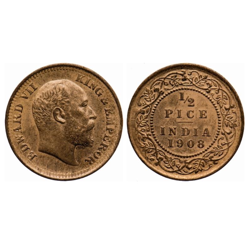 Edward VII, Bronze, ½ Pice, 1908, Calcutta Mint, No mint mark. GK 1009.