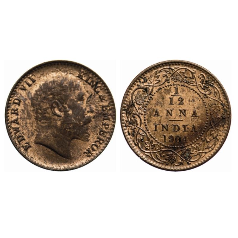 Edward VII, Copper, 1/12 Anna, 1904, Calcutta Mint, No mint mark, Ghost on Obverse. GK 1013.