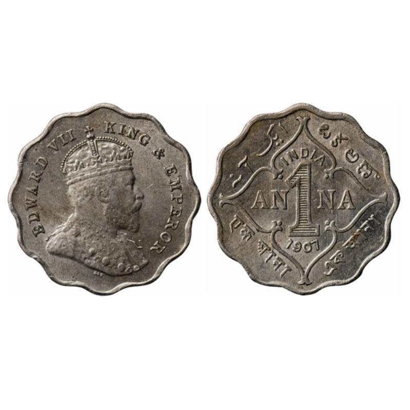 Edward VII, Copper-Nickel, 1 Anna, 1907, Bombay Mint, 'B' incused below the cross pattee of the crown. GK 990.