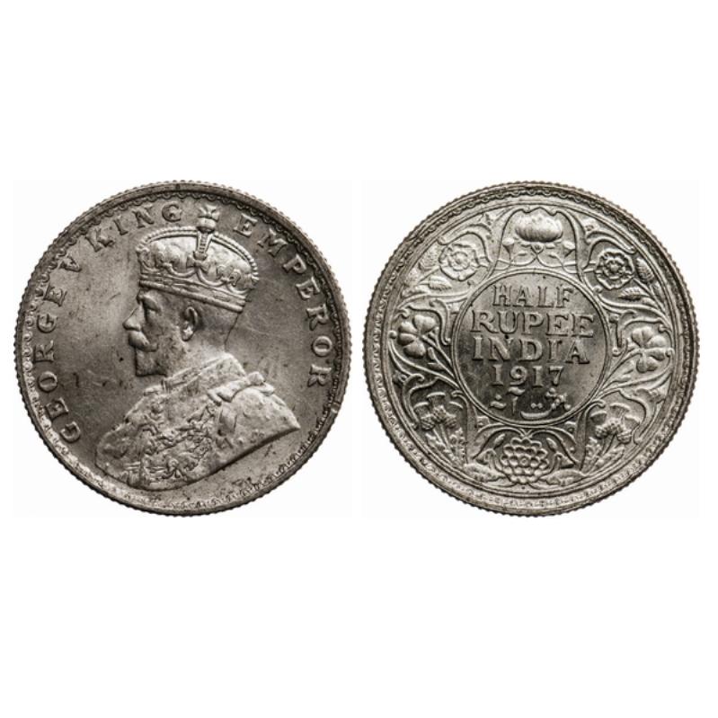 George V, Silver, ½ Rupee, 1917, Bombay Mint, Dot. GK 1055.