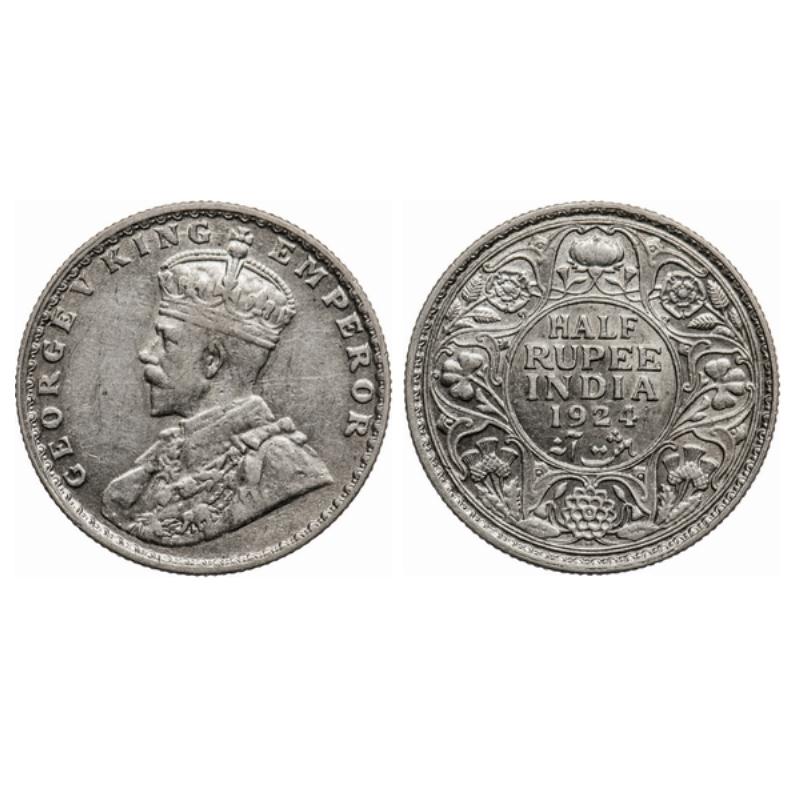 George V, Silver, ½ Rupee, 1924, Bombay Mint, Dot. GK 1064.