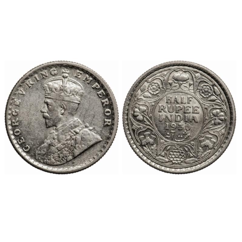 George V, Silver, ½ Rupee, 1930, Calcutta Mint, No dot. GK 1072.