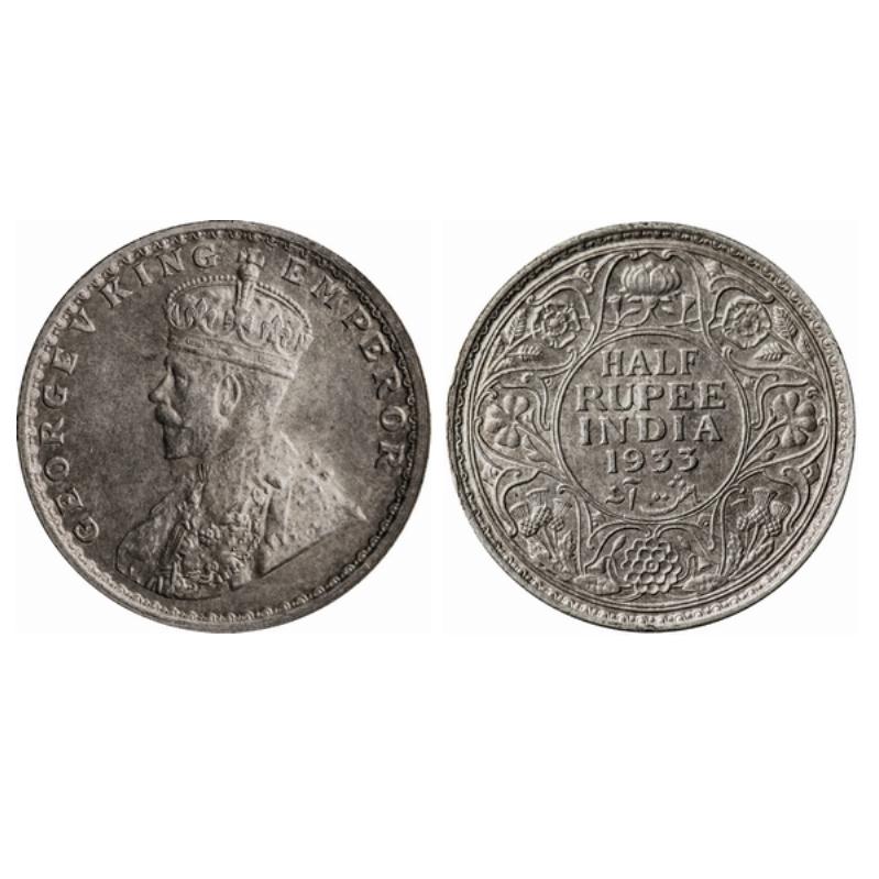 George V, Silver, ½ Rupee, 1933, Calcutta Mint, No dot. GK 1073.
