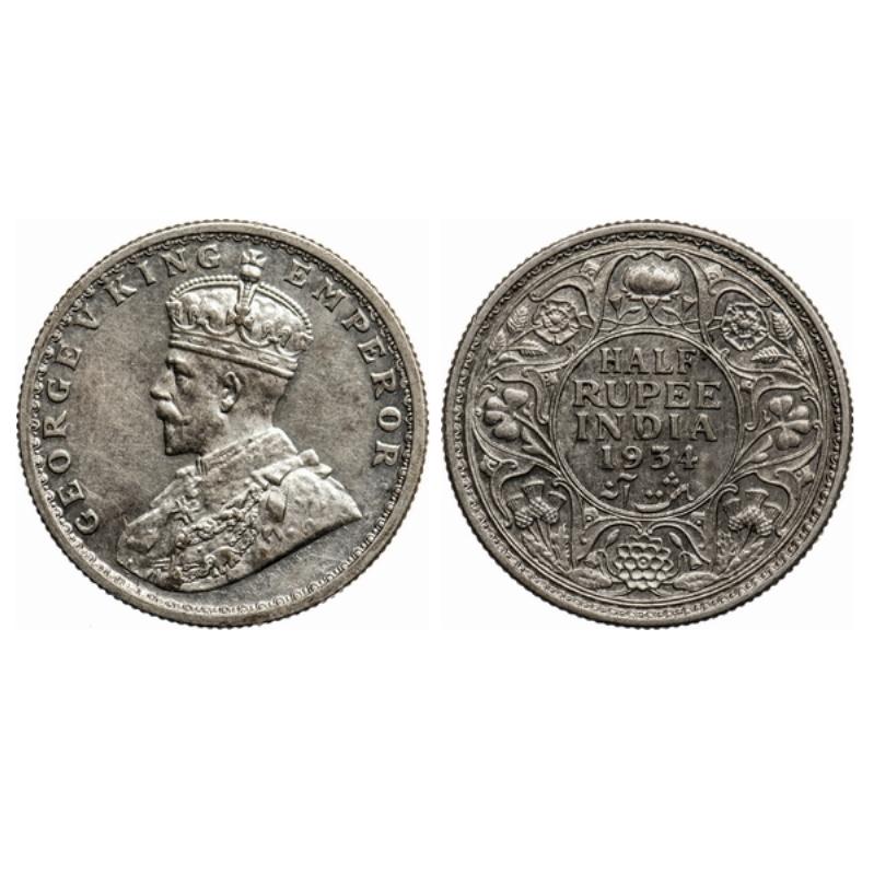 George V, Silver, ½ Rupee, 1934, Calcutta Mint, No dot. GK 1074.