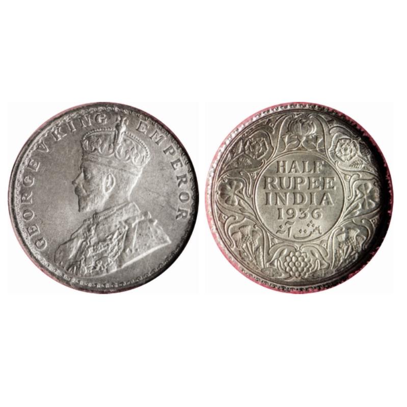George V, Silver, ½ Rupee, 1936, Calcutta Mint, No dot. GK 1075.