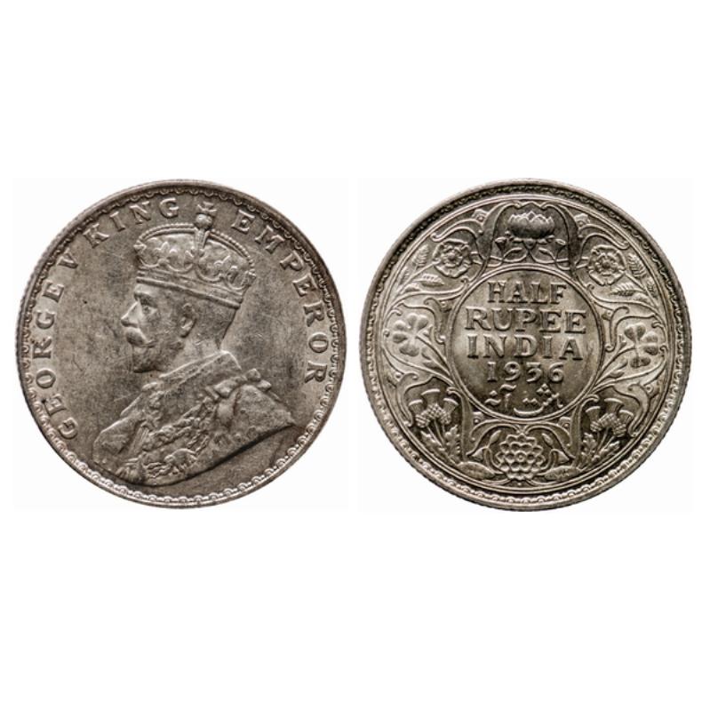 George V, Silver, ½ Rupee, 1936, Bombay Mint. GK 1076.