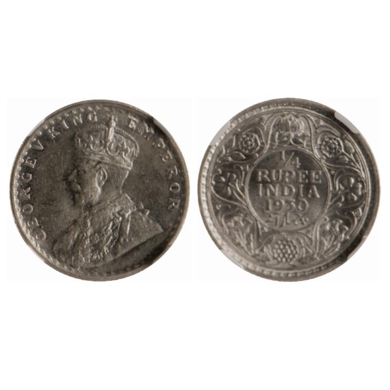George V, Silver, ¼ Rupee, 1936, Bombay Mint, Dot. GK 1100. ...