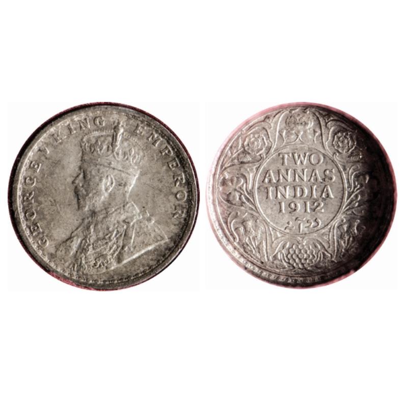 George V, Silver 2 Annas, 1912, Bombay Mint, Dot, Redrawn Elephant. GK 1109.