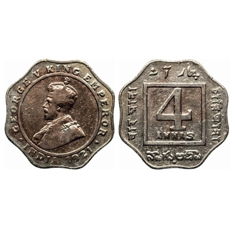 George V, Copper-Nickel, 4 Annas, 1921, Bombay Mint, Dot. GK 1106.