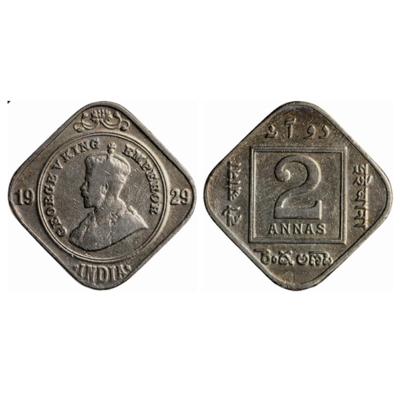 George V, Copper-Nickel, 2 Annas, 1929, Calcutta Mint, No dot. GK 1134.