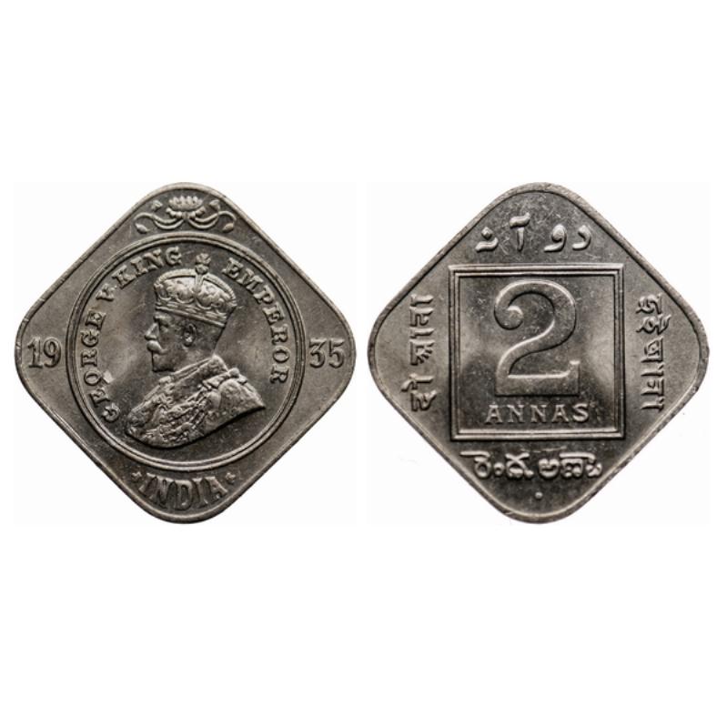 George V, Copper-Nickel, 2 Annas, 1935, Bombay Mint, Dot. GK 1139. ...